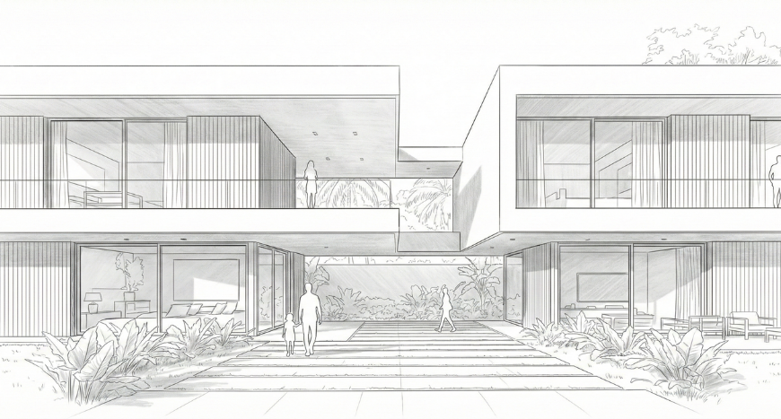 งานออกแบบสถาปัตยกรรม ออกแบบอาคารและผังพื้นที่ให้สวยงาม สมดุล และใช้งานได้จริง คิดครบทั้งทิศทางแสง ลม โครงสร้าง และบริบทของพื้นที่